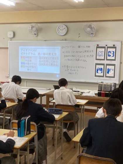 8年生の美術でオリジナルのピクトグラムの作成の取り組みがありました。まずは想像力をふくらませているところです。