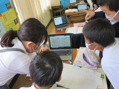 理科で、日なたと日かげの温度をそれぞれ撮影し、パソコンにアップロードしました。
