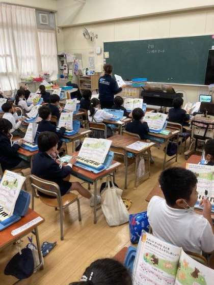1年生で音楽の時間に鍵盤ハーモニカでこいぬのマーチの練習がありました。みんな上手に吹いていました。