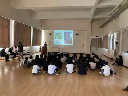 4年生で防災の出前授業がありました。消防署や役所の方々をお招きし、浪速区の防災に関するお話をしていただきました。自分にできることは何かを意識して説明を聞いていました。