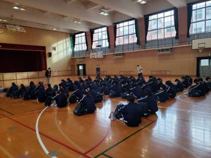 本日は7年生の校外学習です。場所は貝塚にある大阪府立少年自然の家で野外炊飯とオリエンテーリングを予定しています。心配されていた天気ももちそうです。皆元気にいってきます。