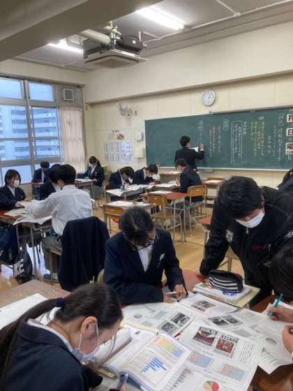 昨日、6限目に9年1組で国語の研究授業がありました。メディアリテラシーというテーマで、本文に照らし合わせた図をみて、他の資料とも比べながら、根拠をもとにどの図・グラフが適しているか自分の考えを述べる授業になりました。難しいテーマにもかかわらず積極的に意見交換ができていました。放課後の研究討議でも非常に有意義な時間となりました。