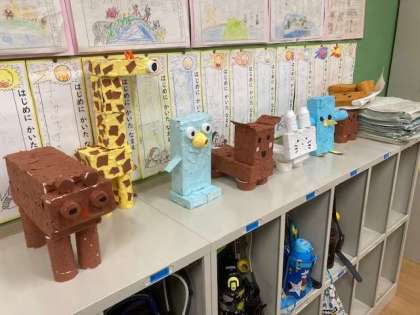 1年生で作品展に向けての工作取り組みがありました。かわいい動物ができてきています。どれも特徴をしっかりととらえています。