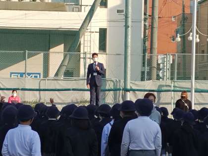 その後、担当の先生から手洗いの励行のお話があり、代表の児童から「あいさつ週間」のお話がありました。