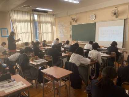 7年生で道徳の授業があり、奈良筆に生きるというタイトルで、伝統や文化について考えを深めていました。