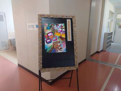 画像下:中学生美術部員が小学校作品展に寄せて制作してくれました。
