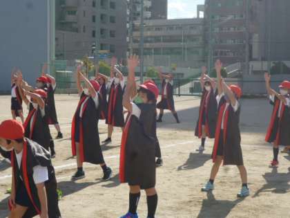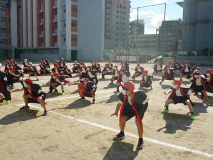 冬空の下、5年生は寒さに負けずソーラン節の練習に励んでいました。