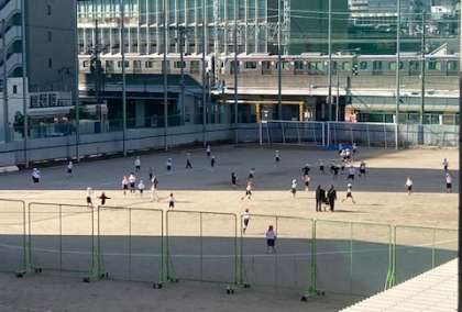 1年生の体育の授業です。寒い中元気に走り回っています!