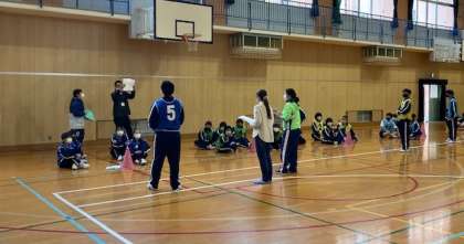 7年生は5,6限目体育館で室内オリンピックを行いました。7種目の競技が行われ、どの種目もユニークで全員協力しながら、こちらも大盛り上がりでした。写真は、うちわリレーでピン球を落とさずうちわで運ぶリレーと、ジェスチャーゲームでお題を身振り手振りで表現している様子です。