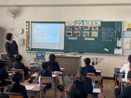 3年生では食育の公開授業があり、給食がバランスよく栄養がとれる献立になっていることを、分かりやすく映像でグラフ化することで紹介がありました。偏った食事だとどんな栄養素が足らないか児童がたくさん発言できており、興味を引き出していました。
