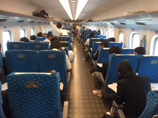 新幹線で、東京を出発しました。新大阪駅には、16時33分到着予定です。