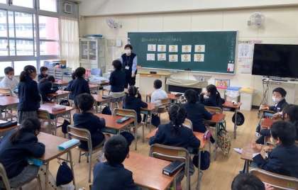 2年生で英語の授業があり、数字の1から10まで英語で発音する練習がありました。グループで協力して発音する取り組みもあり、楽しんでいました。
