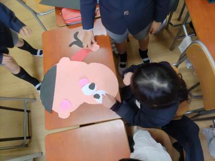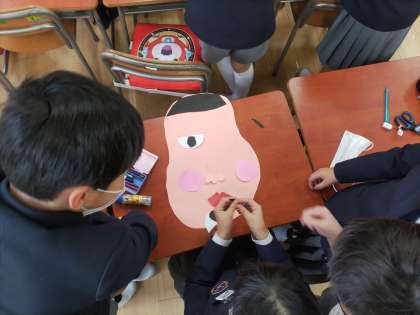 2年生では福笑いを作ってみんなでやってみました。