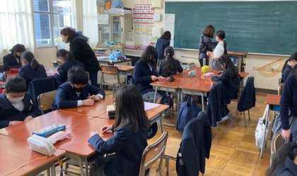 放課後小学校でクラブ活動がありました。いくつかの教室や運動場、体育館に分かれて活動しました。写真は教室で家庭科部としてミサンガをつくっているところです。どの班も上手に作れていました。
