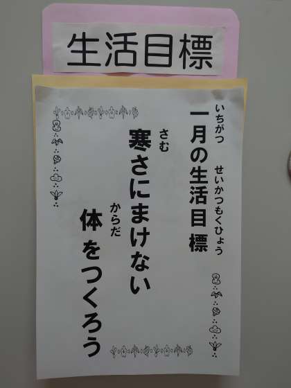 1月の生活目標は「寒さにまけない体をつくろう」です。