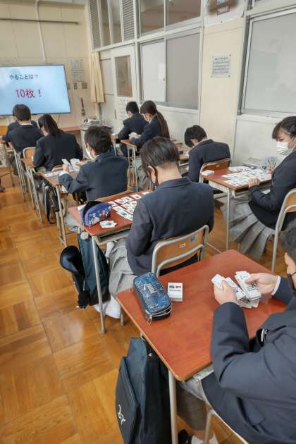 先日、7年生で ヒューマンキャンパス高等学校から講師の方をお招きし、キャリア教育の取り組みを行いました。特殊なカードなどを使い、自分を知ることで将来の進路について考えるよい機会となりました。