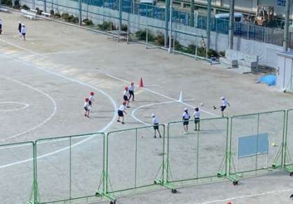 3年生の体育でキックベースに似たルールの取り組みがありました。皆楽しそうにボールを蹴ったり、守ったりしていました。