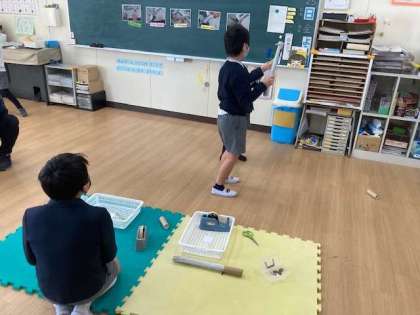 本校のスマイル教室で特別支援教育自立活動学習の公開授業がありました。「いっしょに 考えよう いっしょに 作ろう」というテーマで新聞紙などをつかってびっくりロケットを作成しました。自分の役割をしっかりとこなし、時には協力しながら上手に作っていました。うまく飛んでいったときはとても喜んでいました。