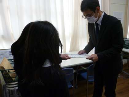 読み聞かせボランティアの保護者の皆様、1年間、子ども達のために朝早くから活動していただき、本当にありがとうございました。本日、お子様を通して感謝状をお渡ししました。
