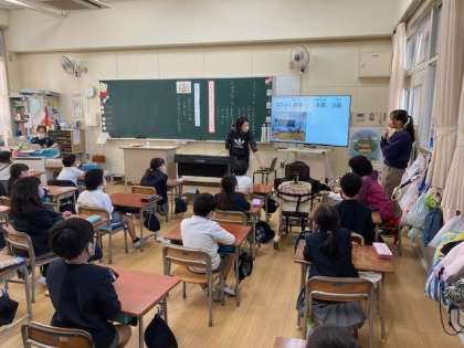 1年生に特別支援学級の「なかよし学級」について知ってもらう授業がありました。パワーポイント資料もつかながら、わかりやすく説明がありました。みんな真剣に聞いていました。