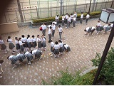 6月3日水曜日 朝から雨が降っていましたが、昼休みの雨が小降りになった時間を使って3年生が学年競技の練習(ムカデ競争)をしていました。みんな息の合ったところを見せてくれています。
