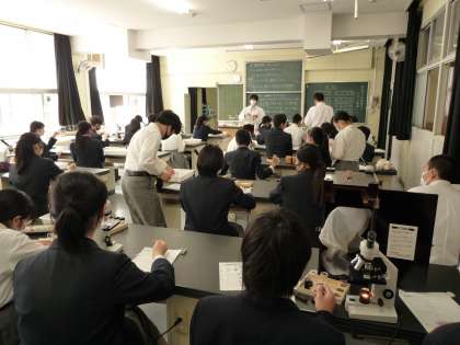 9年生の理科で、細胞観察の実験がありました。数種類を観察し、拡大してみえた実際の細胞をみて興奮気味に記録をとっていました。