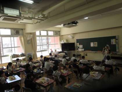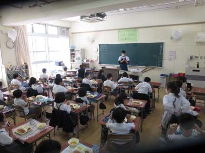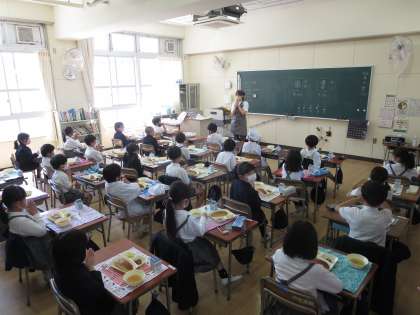 本日は、黒糖パン、豚肉のデイグラスソース、スープ、キャベツとコーンのソテー。