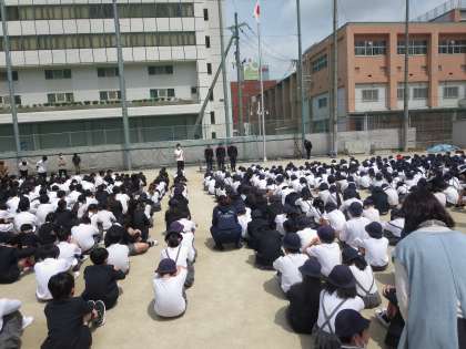 校長先生からは、5分で避難ができたのは素晴らしい!急いでいる様子、しゃべらず真剣に避難訓練に取り組んでいる様子は素晴らし姿だと思いました。こういうことを真剣に自分の心に置いておく、これがいざという時に結局は自分の身体を守ってくれることとなります。すごくいい避難訓練ができたと思います。皆さんが皆さんに拍手しましょう!