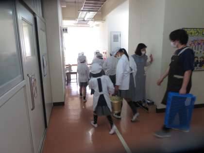 3年生の給食の配膳の様子です。