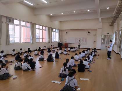 今日は各学年で遠足の説明会をしています。集団での校外学習、こんな沢山で電車に乗って行く遠足。分からないことや不安なこと、みんな真剣に先生の説明に聞き入っていました。