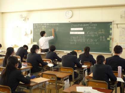 9年生の数学で、因数分解の授業がありました。どのように答えを導いていくか、公式を参考に悩みながらも問いに答えていました。
