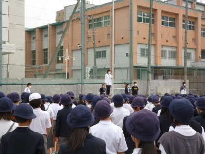 昨日から校長先生が9年生の修学旅行に行っていますので、今日は教頭先生が話をします。