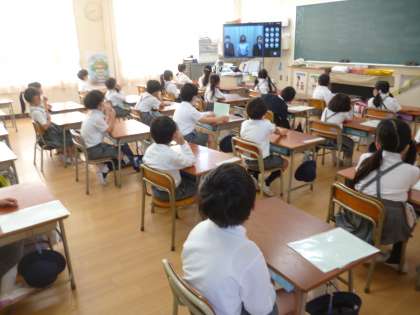 今年度1回目の児童集会をTeamsで行いました。今回は、代表委員会児童の紹介です。静かに聞いていました。