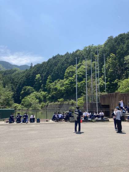 11時50分 素早く集合ができたので、10分早く集合写真を撮って昼食をとります。自然に囲まれて食べるお弁当は格別です。