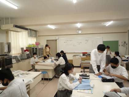 8年生の家庭科で、スナップボタンを縫い付ける授業がありました。慣れない手つきでしたが自分の力で縫い付けることができていました。