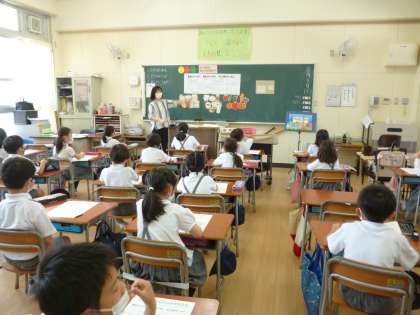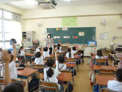 2年生の栄養指導です。黄・赤・緑の栄養素のはたらきについて考えます。
