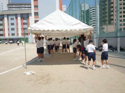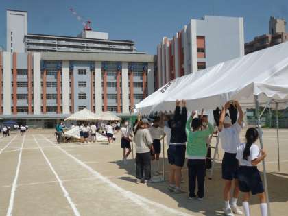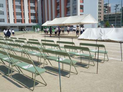 午後から担当の生徒が残って、明日の運動会の準備をしてくれています。とても暑い中、協力してテントを張ったり、杭を打ったり、椅子を並べたり、明日の運動会が楽しみです。