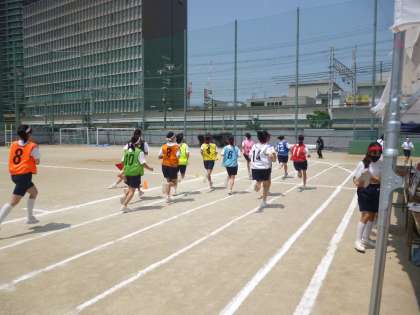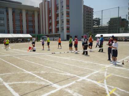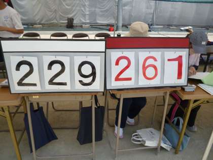 ペース配分を考えて最後まで走り切っています。得点は赤組がリード。