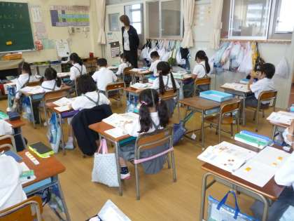 「あわせて いくつ」の学習に入っています。「しき」をたてて、「こたえ」をかきます。