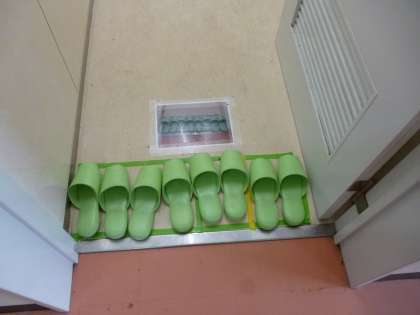 1年生2年生が利用しているトイレのスリッパです。きれいにそろえられていたので思わずカメラに収めてしまいました。使う人がとてもよい気持ちになります。どこのトイレのスリッパもこのようになりますように。