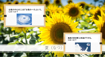 今日は前回に引き続きクイズ、今回は「夏」にまつわるクイズを出題しますので、みなさんも画面も見て考えてください。