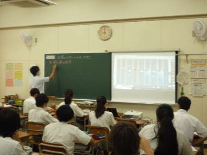 9年生の理科で、イオンの授業がありました。金属のイオンになりやすさを、電子黒板や黒板で詳しく紹介がありました。しっかりとノートに記録していました。