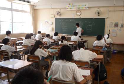 7年生で数学の公開授業がありました。一次方程式の解くにあたり、等式の性質を用いた説明があり、積極的に黒板に答えを書きに来る姿がありました。