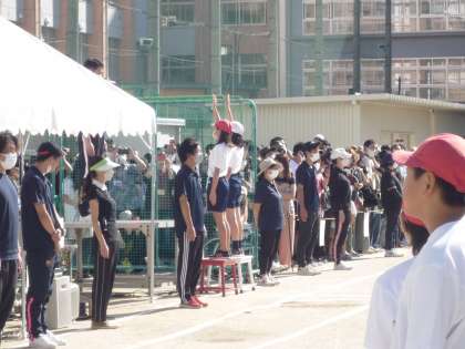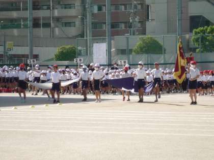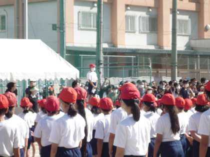 いよいよ運動会の開始です。赤白分かれて入場、そして開会・宣誓の様子です。