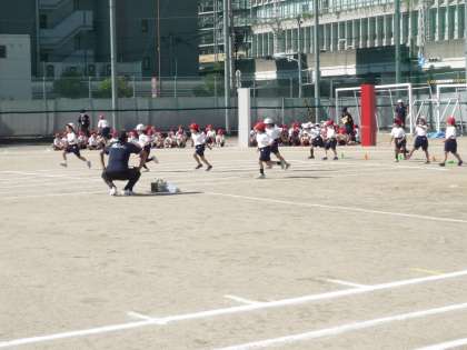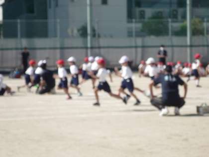 前半のプログラム最初の種目です。1年生は初めての運動会。一生懸命走っていました。