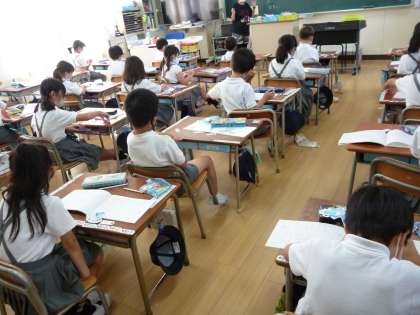 「計算カード」が何枚並ぶかで、机のたてと横、ノートのたてと横、どちらが長いかをくらべています。