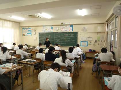 8年生の英語で、テキストの内容を、詳しく解説している様子です。単語や文法の確認をしっかりと行っていました。