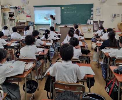 300年前と現在の大和川の写真を見比べて、その違いを考えています。