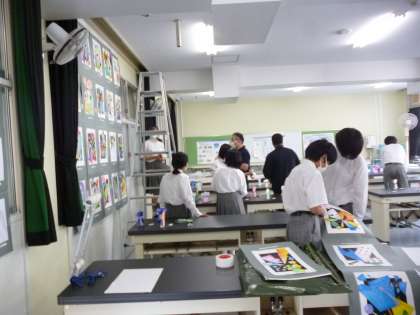 展示作品の準備や吹奏楽部のリハーサル等、生徒も先生も最後の仕上げです。明日の文化祭が楽しみです。