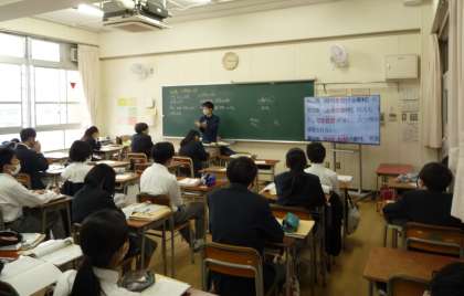9年生の社会で、自由権などの話がありました。動画などもみながら、聞き取った内容を整理してノートにまとめていました。